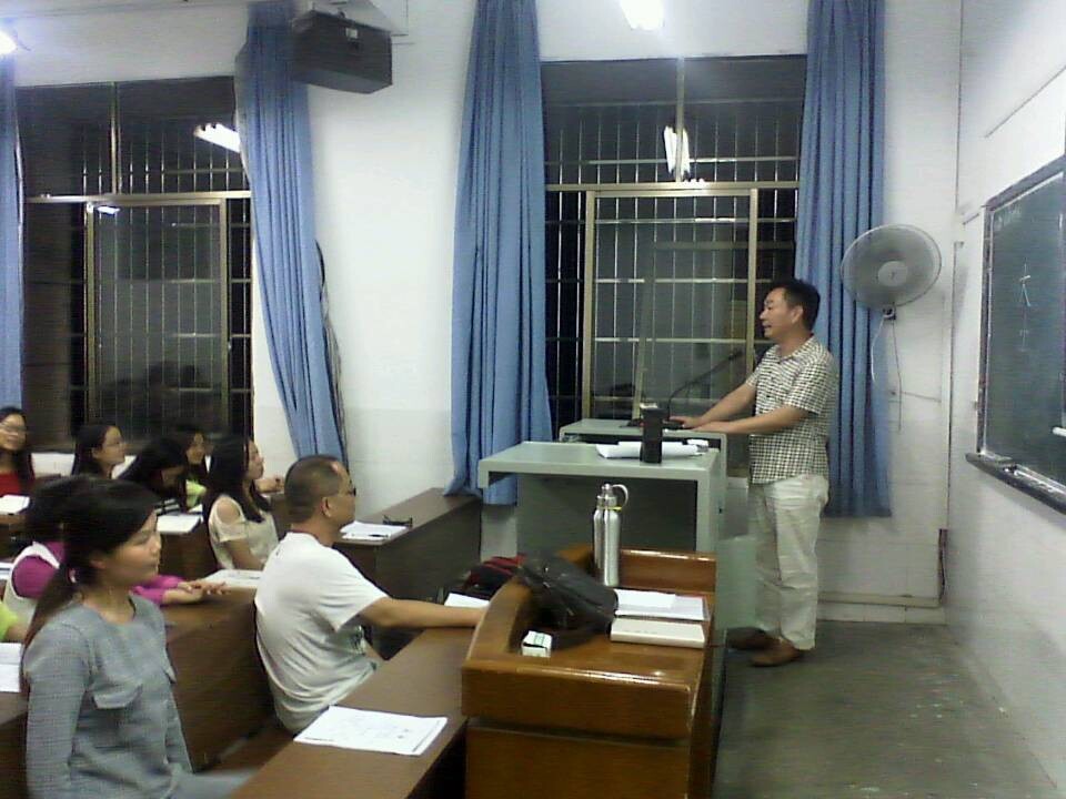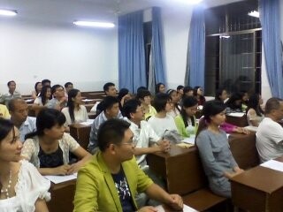 2014年10月20日19:30至21:30,我院13级汉语言专业中国传统文化概论课任老师刘吉元教授在二教104教室举行了关于《大学》读书会的第一次教学活动。特此还请到了一位有名的国学大师师道明来谈他的心得。本次活动以我院13级汉语言文学班的10个同学为主体,同时参与听讲的还有南华大学其他对中国传统文化感兴趣的同学、老师及一些社会人士。全场气氛甚好,学术气息十分浓厚。