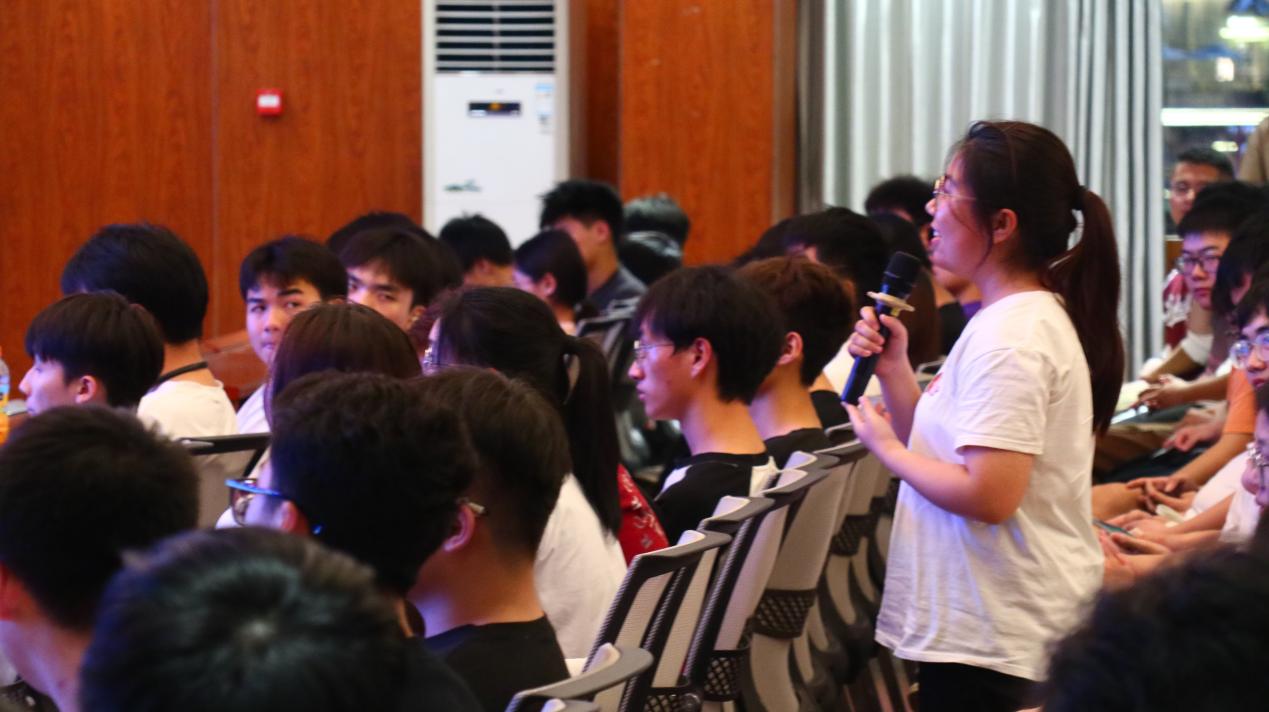在交流会上,骆宾鹏校友首先以“刚进入大学你的目标是什么”为主题,向同学们阐明了树立目标的重要性,清晰的目标是人生旅途的风向标,有了明确的目标后努力便有了方向,这样才能更好地成就优秀的自己。而后,骆宾鹏校友向同学们了解了目前对大学生活和学习状态的满意程度,面对同学们各种各样的困惑和忧虑,他表示十分地感同身受。作为学长,骆宾鹏校友向同学们提出了自己的意见:找到自己的目标,认清自身的想法,把大目标分解成一个一个小目标去逐一完成。骆宾鹏表示,迷茫和困惑是每个人都会遇到的困境,努力学习并找到适合自己的道路是打破困境的重要一步。