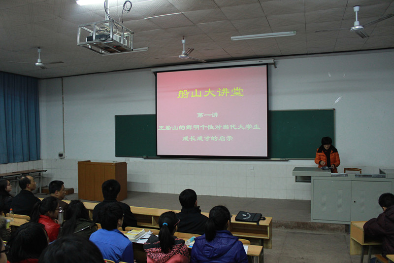 黄昕教授将王船山作为坚贞之遗臣所体现的民族气节,集豪杰与圣贤于一体的人格理想,即事穷理、经世致用的求实精神娓娓道来,深深地感动着在场的观众们。本次讲座,内涵丰富,意义深厚,王船山鲜明的性格,影响着他一生的命运和成就。从王船山的身上,大家学会了应该怎样去培养良好的性格,修炼优良的个性,为成功奠定情商基础。