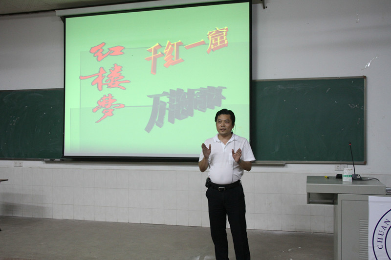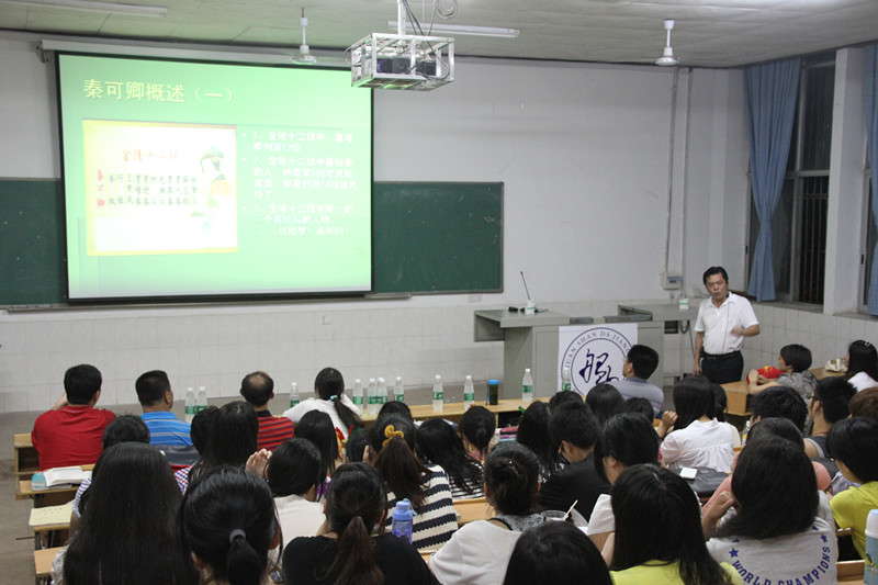 龙志坚老师对《红楼梦》的有着深刻的研究和独到的见解,首先,他用“千红一窟,万艳同杯”八个字阐述了红楼梦中人物的形象特点。其次,龙老师以“秦可卿之谜”为主题,从秦可卿的身份地位、性格特点等来剖析了秦可卿这一传奇人物的“身世之谜、卧室之谜、托梦之谜、丧事之谜。”整场讲座期间,龙老师通过提问互动的方式激起同学们的听课的热情,活跃了现场气氛。最后,龙老师谈到,一位从养生堂抱来的弃孤——秦可卿,能在贾府说话高调,行为高贵大气,待遇优厚,是因为她可能是废太子的女儿,这一谜底引起了老师同学的共鸣,激发了同学们深究《红楼梦》这一经典文学的兴趣。龙老师以语言幽默、内容丰富、通俗易懂的讲课风格赢得了老师同学的阵阵掌声。