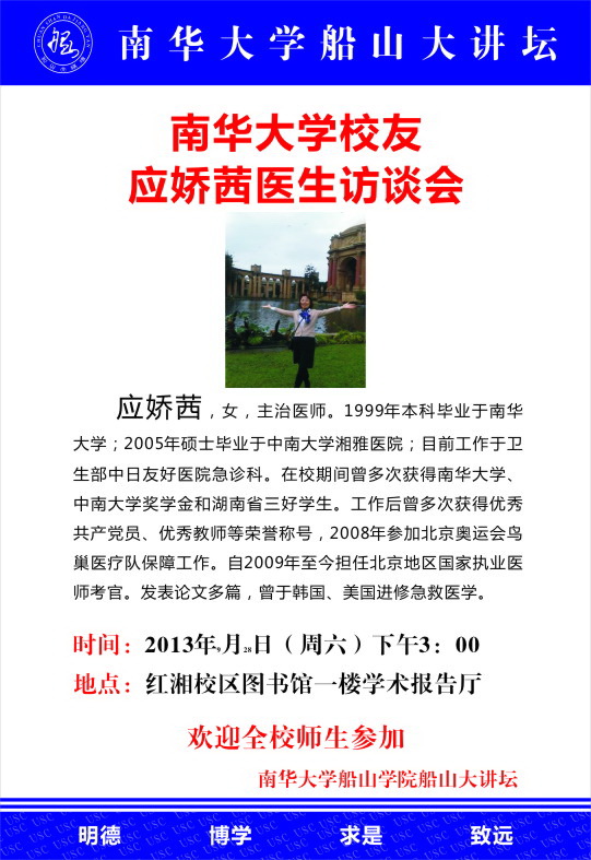 船山大讲坛第五期 南华大学校友 应娇茜医生访谈会