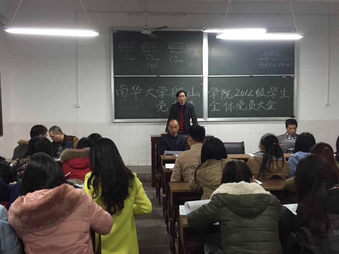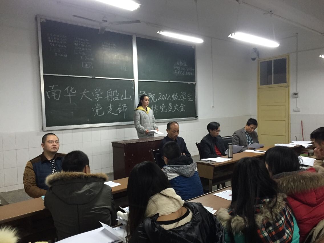 为进一步完善太阳集团tyc151党员队伍建设,12月23日晚7时,船山学院2012级学生党支部在南华大学第二教学楼119教室召开党员转正大会及预备党员接收大会。会议由周凤同学主持,2012级学生党支部书记李国华老师、学工室魏宏老师、褚书来老师、王鹏老师出席了此次会议,2012级学生党支部全体学生党员、预备党员参加了此次会议。