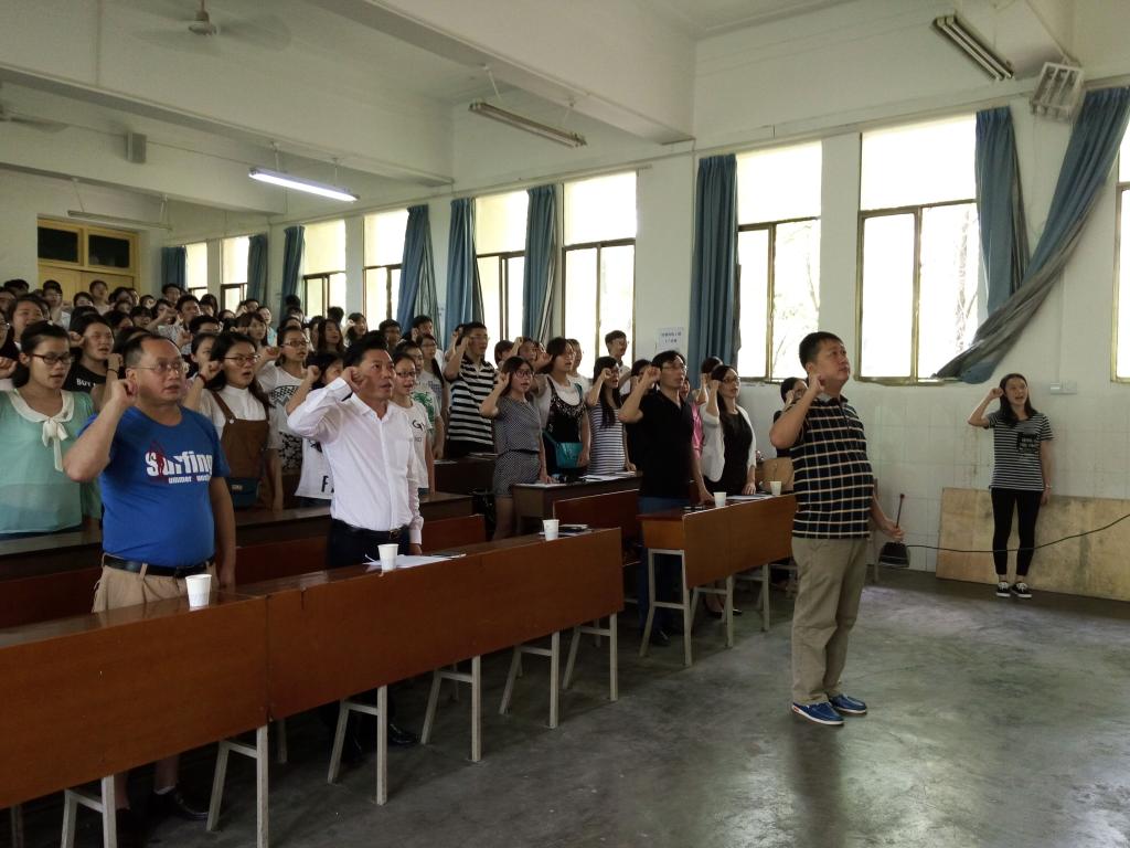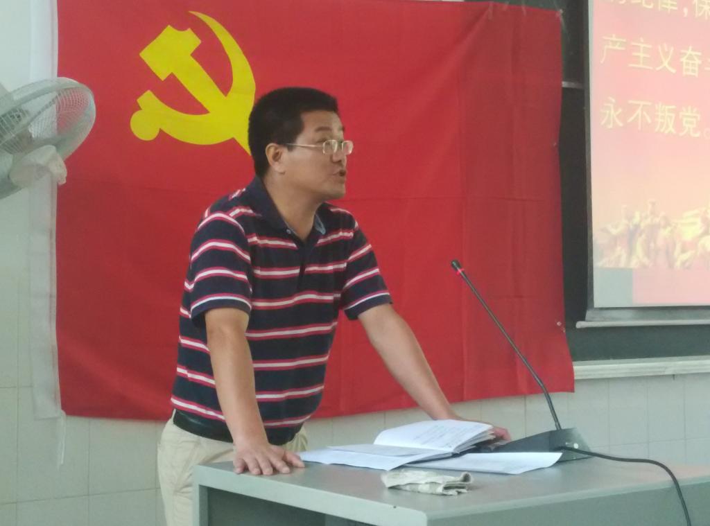 接着,李庆老师领誓入党誓词。由2015届毕业生党员代表刘赞同学发言,他结合自己大学期间的学习和工作经验,向与会党员作了经验交流,表达了对母校和老师的衷心感谢,同时也表示要以共产党员的标准要求自己。