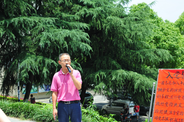 最后,院党委书记龙志坚作了讲话。他首先对加入党组织的新党员们表示热烈地欢迎和衷心地祝贺,其次,对本次宣誓的新党员提出了三点要求:一是希望毕业班党员站好最后一班岗,树立好学生党员的良好形象,发挥好党员先锋模范作用,做文明离校的表率,为大学生活画上圆满句号。二是希望毕业生党员们能够尽快融入工作岗位,加快角色转变,融入社会,融入新的集体,并时时处处牢记自己是一名党员,时刻谨记党员身份。在新的工作岗位上,严谨细致、踏实工作,为母校增光、为党旗添彩。三是希望在校的党员要坚定信仰,不仅在形式上入党,更要在思想上入党,加强知识学习,提升思想高度。