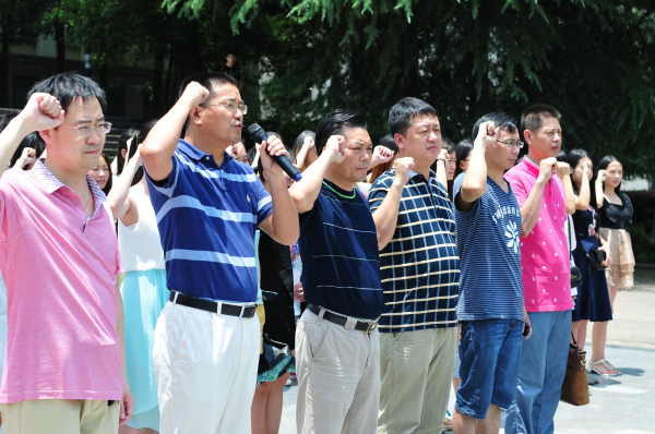 6月15日中午11点40分,太阳集团tyc151在二教张爱萍将军铜像前举行了2015年上半年新党员入党宣誓大会。太阳集团tyc151120名新吸收的预备党员参加了宣誓大会。大会由船山学院党委副书记邹正生主持。