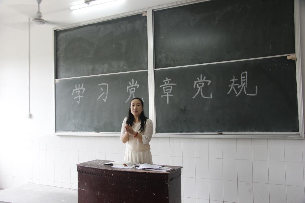 刘博艺老师以介绍“两学一做”系列活动为核心,强调道:各位学生党员应扎实学习党章党规,积极参与本次“两学一做”系列活动,准备自我的党员生活记录本,准备自我微党课,观看红色电影,参与党员活动。并借两个典型故事,突出党章党规的重要性,党员干部要做的不仅是内化于心更要外化于形。