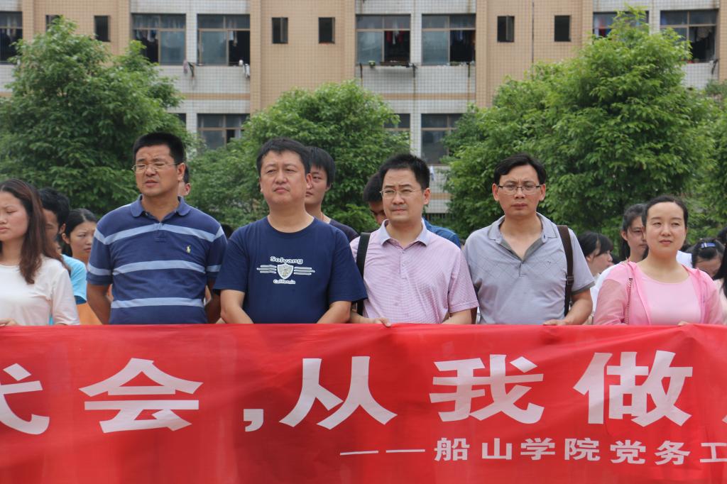 值“两学一做”在全国热火朝天开展的时候,南华大学第三届党代会即将召开之际,船山学院全体党员响应学院党委号召,于6月8日中午开展了“践行‘两学一做’,喜迎党代会,从我做起”的教育实践活动。参与本次活动的指导老师有太阳集团tyc151党委书记谢铷鸿,党委副书记邹正生,党委副书记唐康伟,学生党务工作部部长李庆,11级13级联合党支部书记李海涛,12级党支部书记李国华,14级党支部副书记刘博艺及各年级辅导员老师。