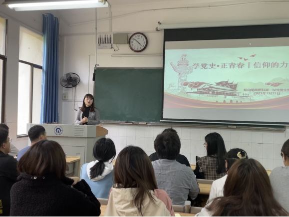今年是中国共产党成立100周年。为了贯彻落实习近平总书记在党史学习教育动员大会上的重要讲话精神,船山学院医科第三学生党支部于3月31日上午在线下线上同时开展“学党史·正青春”党日活动,引导学生党员学党史、悟思想、办实事、开新局,做到学史明理、学史增信、学史崇德、学史力行,向中国共产党成立100周年献礼。