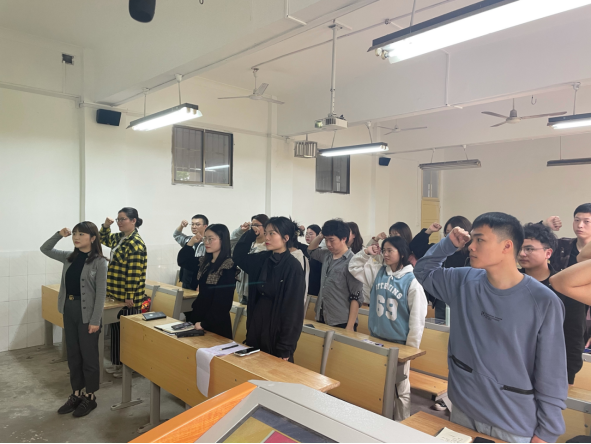 紧接着,是重温入党誓词。为了使各位党员同志更加坚定党性、坚定理想、坚定信念、坚定追求、坚信党的领导,不忘初心,时刻牢记作为党员的行动指南,全体师生党员在船山学院医科第三学生党支部书记旷思佳的带领下,面向党旗,重温入党誓词,庄严宣誓。充分表达对建党一百周年的崇高敬意。