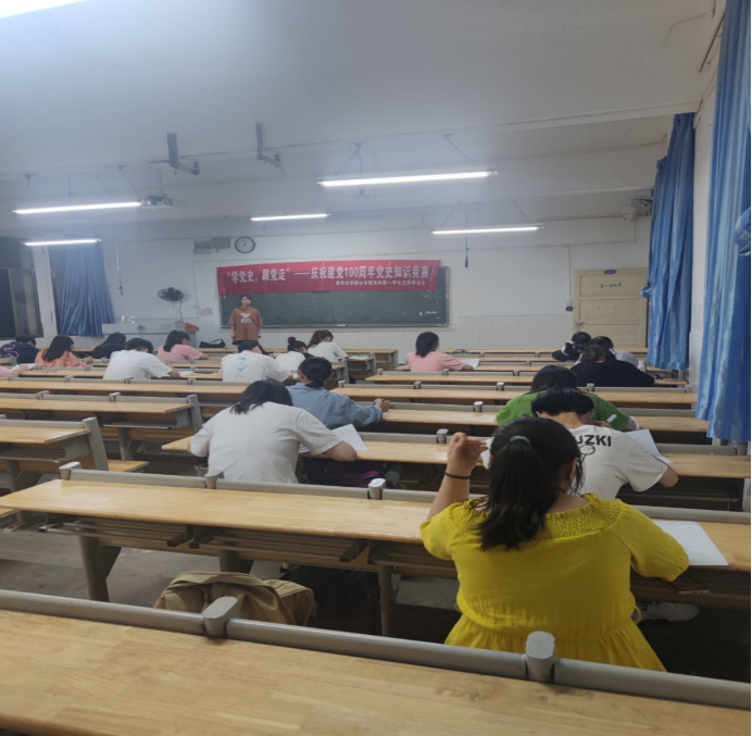 2021年6月15日晚七点,为隆重庆祝中国共产党建党100周年,我院文科第一学生党支部学党史、知党情、跟党走,加深对党的理想信念的认识和理解,在一教315教室举行党史知识竞赛活动。