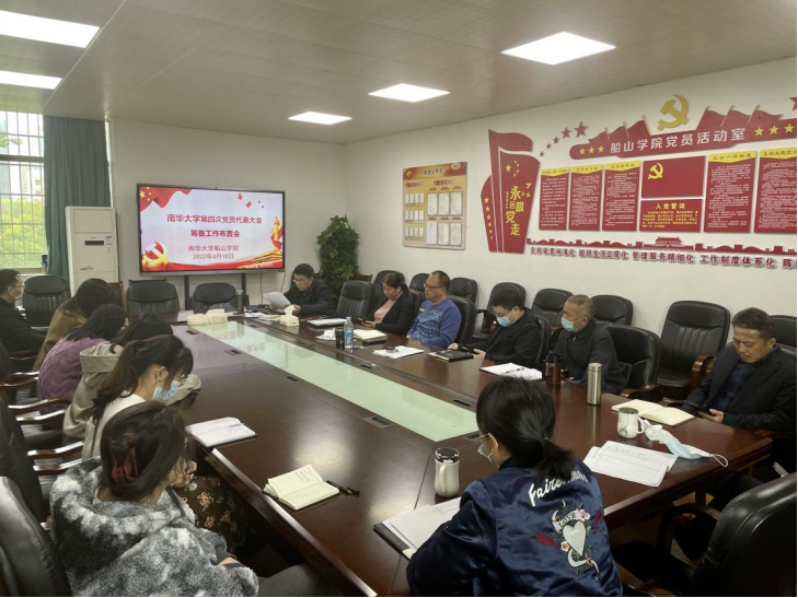 中国共产党南华大学第四次代表大会将在5月上旬召开,按照南华大学党委的要求,学院于4月18日召开学院全体教职工党员大会,会议由学院党委书记阳剑兰主持。会上阳剑兰传达学习了《中国共产党南华大学第四次代表大会筹备工作方案》《中国共产党南华大学第四次代表大会代表选举工作方案》《中共南华大学纪律检查委员会关于严肃第四次党代会换届选举纪律的通知》等文件,阳剑兰要求,召开第四次党代会是学校政治生活中的一件大事,对于进一步加强学校党的建设,增强党组织的凝聚力、创造力和战斗力,推动学校各项事业高质量发展具有十分重要的意义。学院全体师生党员要按照学校党委的统一部署,根据工作任务,按照时间节点,扎实做好各项工作。各党支部在推荐党代表候选人提任人选的过程中要充分发挥党员民主,遵循党员意愿。在党员代表选举过程中,要严肃换届选举纪律,严密工作流程、严守工作规则、严格工作规范,认真履行好职责。要开展党代会精神的学习和宣传,使学院广大师生知晓、认同和践行党代会的重大意义、指导思想和主要任务,凝聚干事创业、蓬勃向上、和谐共进的良好氛围。