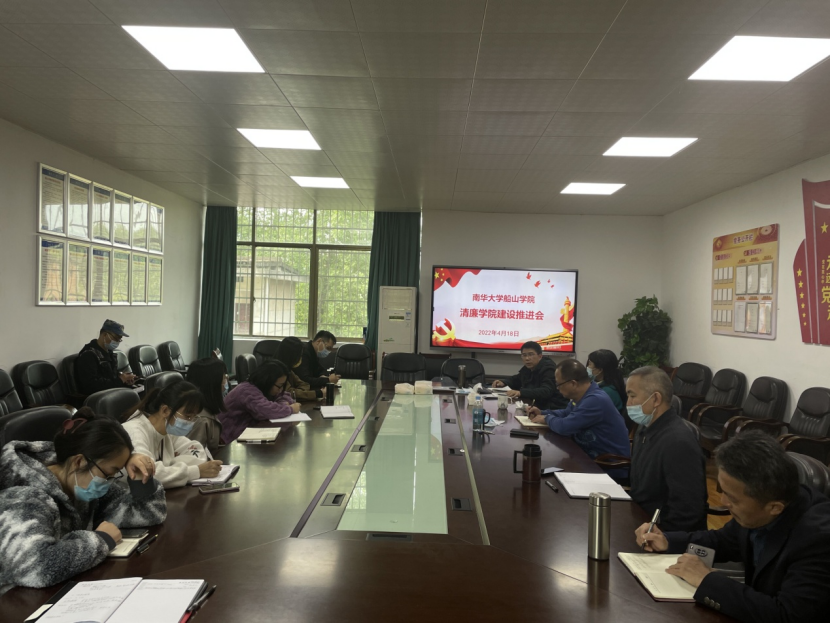 依据南华大学清廉单元建设的要求,2022年4月18日,船山学院在学院会议室召开了清廉学院建设推进会,全体教职员工参加会议,会议由学院党委书记阳剑兰主持。